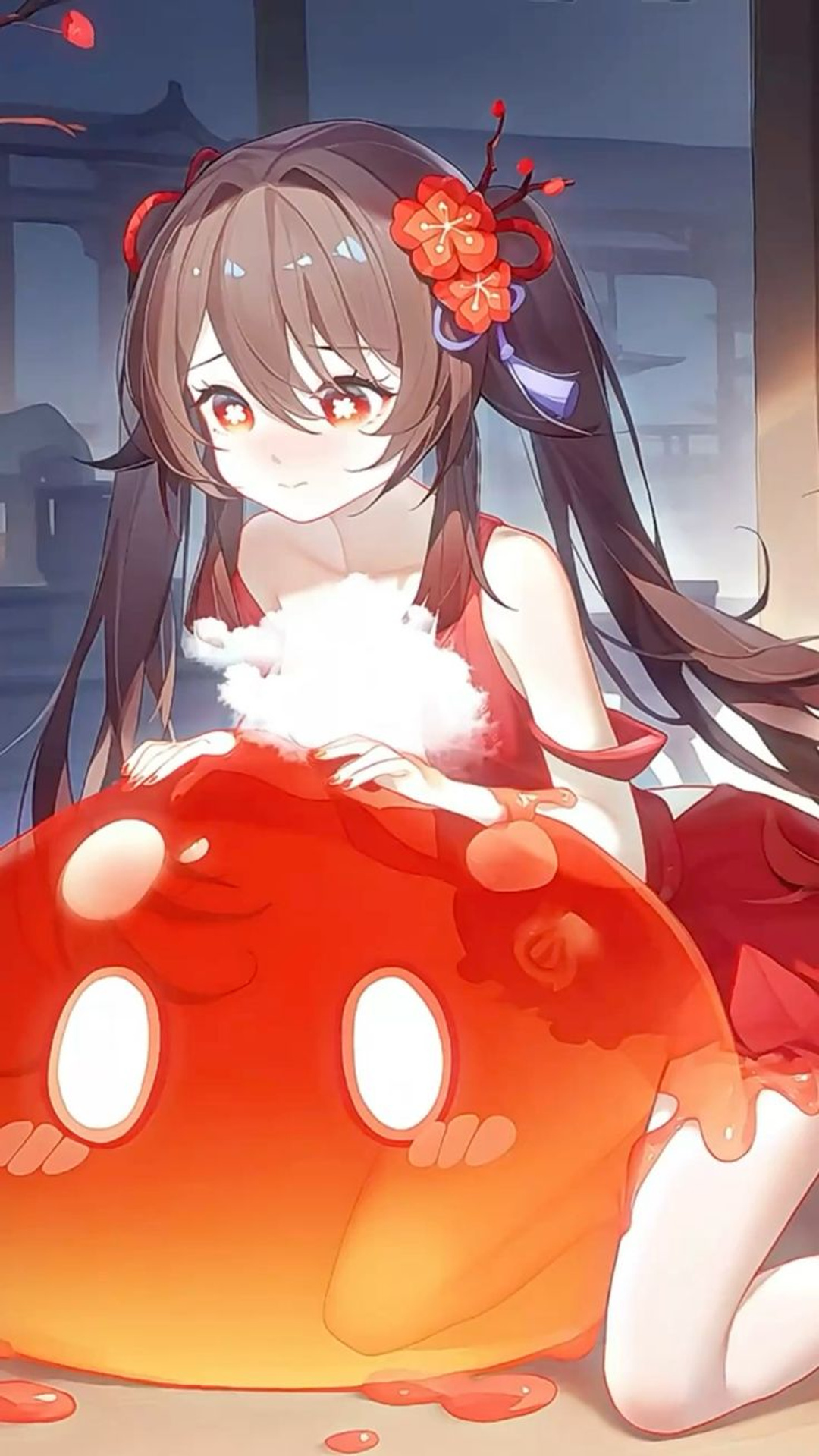 Venti showed a slightly helpless smile and gently picked up the Pyro Slime in front of him.